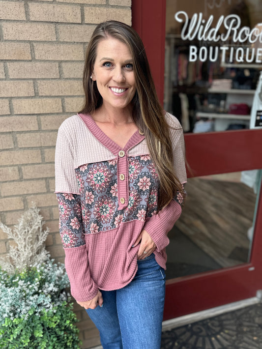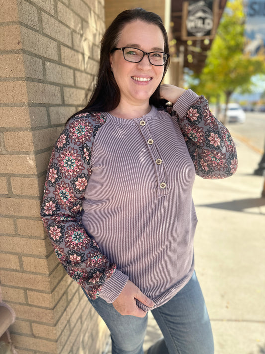 Ribbed Knit & Floral Long Sleeve