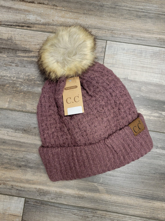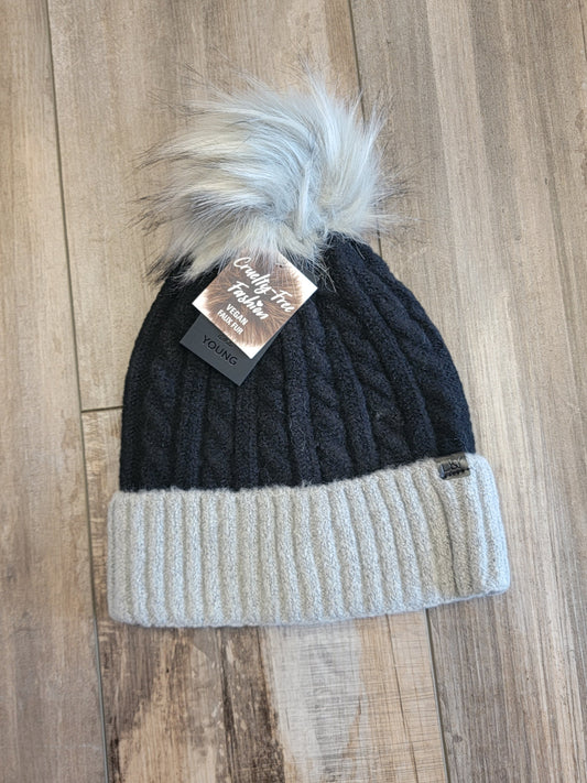 Cable Knit Beanie with Faux Fur Pom