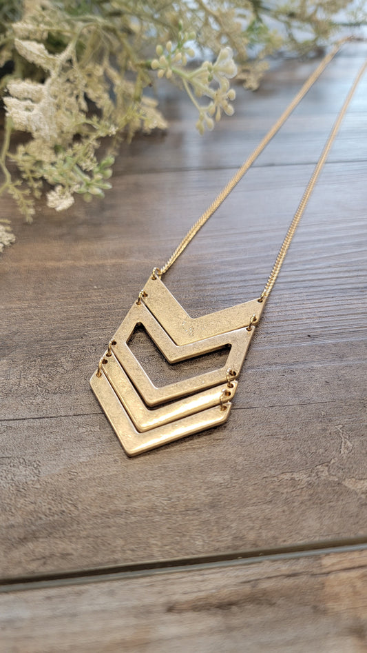 Chevron Metal Pendant Necklace