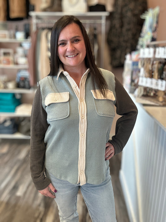 Colorblock Button Up Shacket