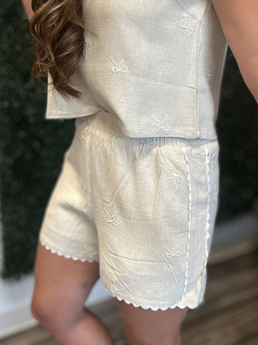 Regular price $36.00 USDRegular priceUnit price / perSale price $36.00 USDEmbroidered Linen Shorts