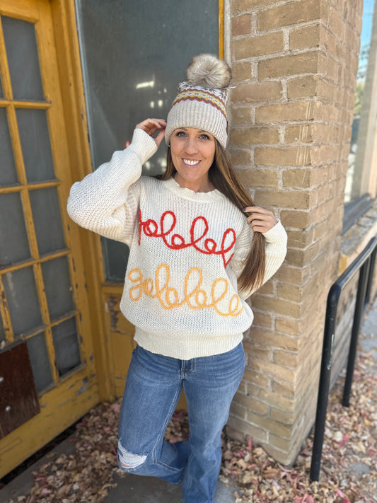 Regular price $41.00 USDRegular priceUnit price / perSale price $41.00 USDEmbroidered "Gobble Gobble" Knit Sweater