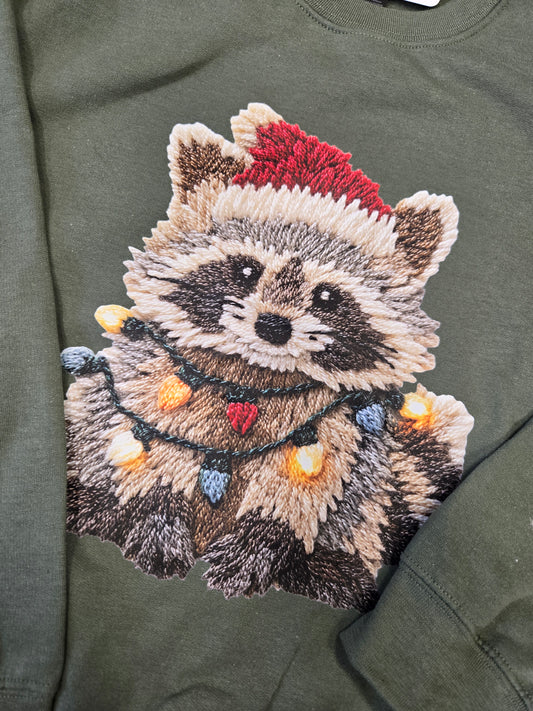 Regular price $42.00 USDRegular priceUnit price / perSale price $42.00 USDFaux Crochet Festive Racoon Sweatshirt
