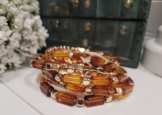 Acrylic Rectangle and Gold Beaded