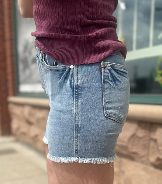 Regular price $49.00 USDRegular priceUnit price / perSale price $49.00 USDLight Wash High Waist Raw Hem Shorts