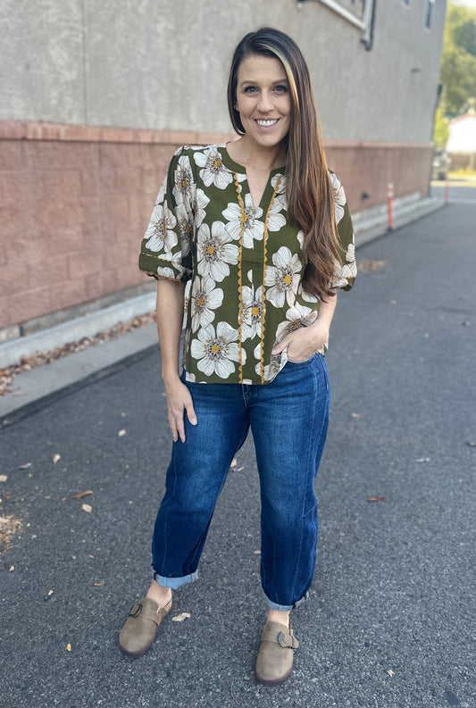 Regular price $41.00 USDRegular priceUnit price / perSale price $41.00 USDOlive Floral 3/4 Sleeve