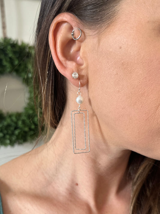 Open Rectangle Earring with Freshwater Pearl