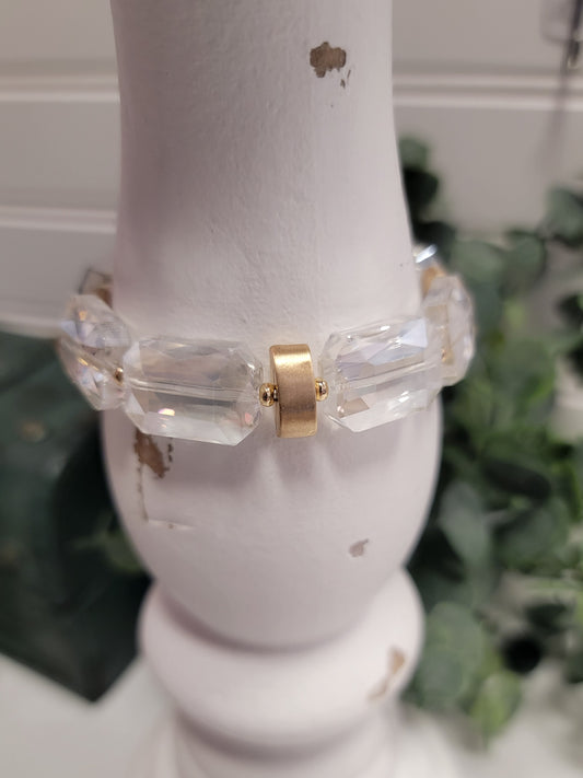 Rectangle Crystal Stone and Gold Stretch Bracelet