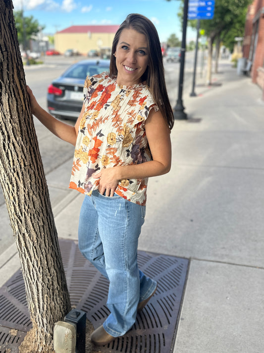Regular price $32.00 USDRegular priceUnit price / perSale price $32.00 USDRust Floral Ruffle Short Sleeve