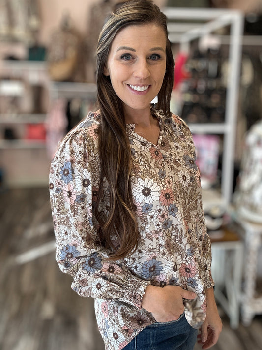 Regular price $32.00 USDRegular priceUnit price / perSale price $32.00 USDRuffle Smocked Long Sleeve Blouse