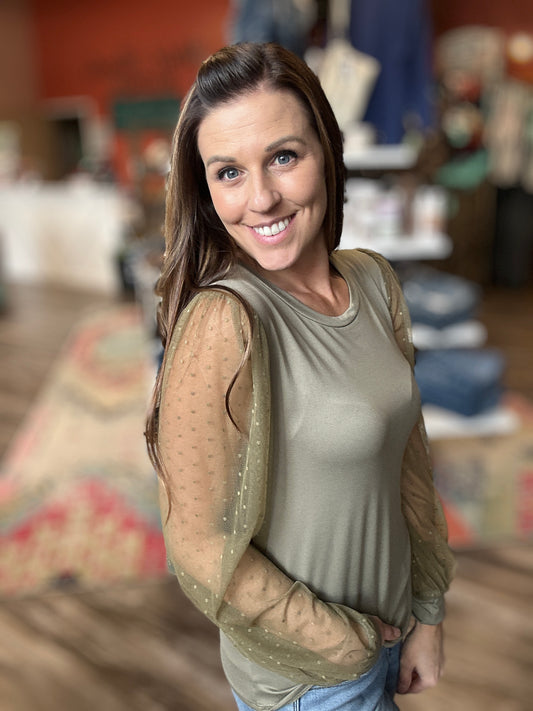 Regular price $32.00 USDRegular priceUnit price / perSale price $32.00 USDSage Polka Dot Mesh Long Sleeve