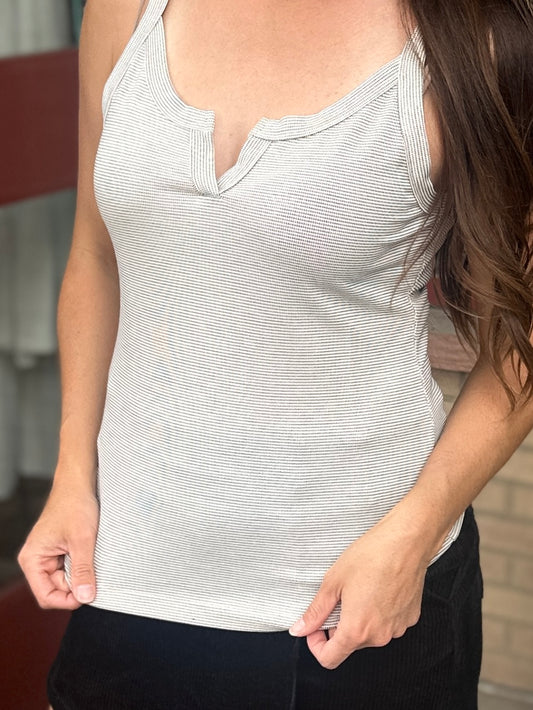 Regular price $28.00 USDRegular priceUnit price / perSale price $28.00 USDTextured Knit Split V-Neck Tank