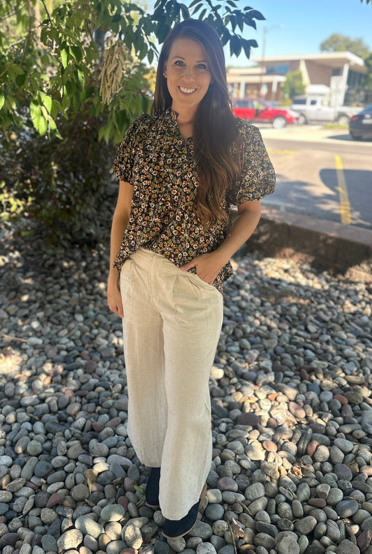 Regular price $32.00 USDRegular priceUnit price / perSale price $32.00 USDBlack Floral Puff Sleeve Blouse