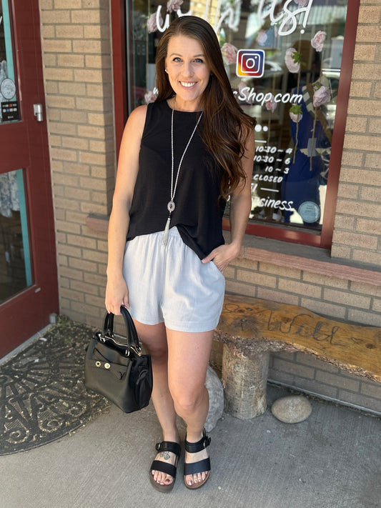 Regular price $28.00 USDRegular priceUnit price / perSale price $28.00 USDBlack Crinkled Sleeveless Tank
