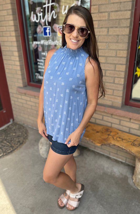 Regular price $24.00 USDRegular priceUnit price / perSale price $24.00 USDBlue Mock Neck Sleeveless Top