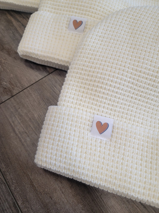 Cream Waffle Knit Heart Beanie