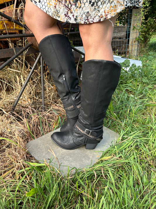 Regular price $96.00 USDRegular priceUnit price / perSale price $96.00 USDDye Cut Black Tall Buckle Boots