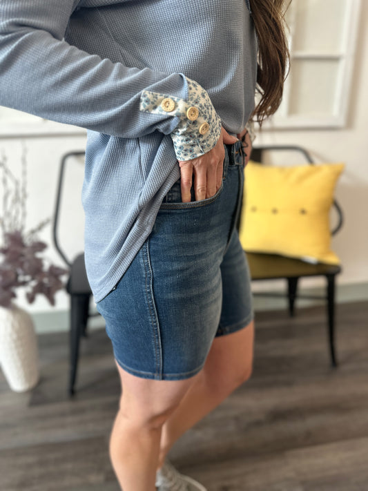 Regular price $48.00 USDRegular priceUnit price / perSale price $48.00 USDSky Blue Dyed Frayed Hem Shorts