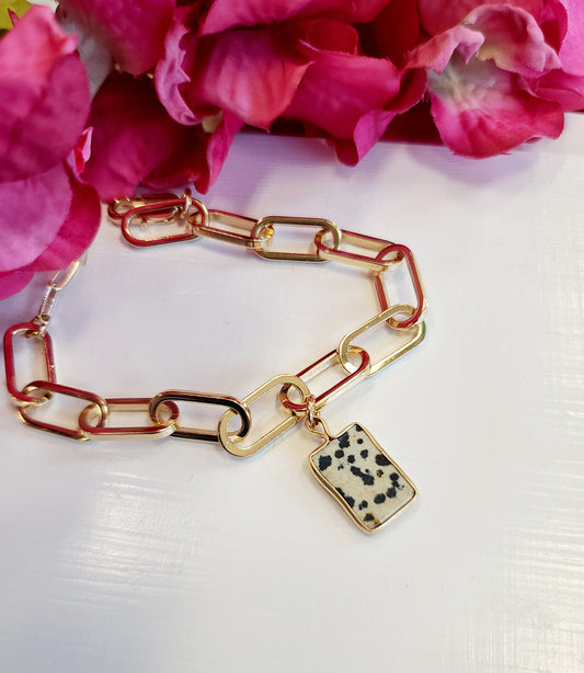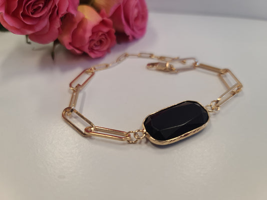Regular price $14.00 USDRegular priceUnit price / perSale price $14.00 USDOval Stone Gold Link Bracelet