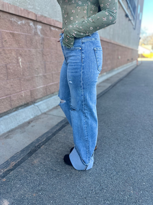 Regular price $64.00 USDRegular priceUnit price / perSale price $64.00 USDMid Rise Wide Cuffed Jeans