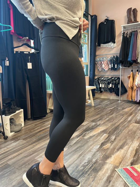 High Waisted Solid Capri Leggings