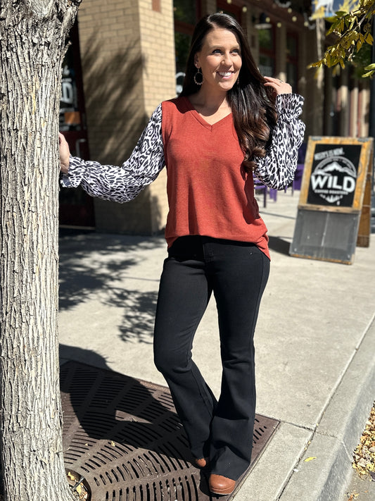 Regular price $31.00 USDRegular priceUnit price / perSale price $31.00 USDRust Waffle Knit + Animal Print Long Sleeve