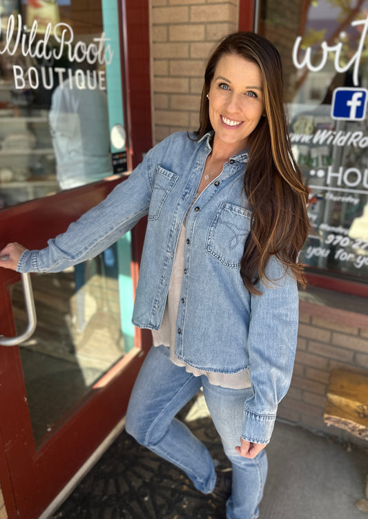Regular price $65.00 USDRegular priceUnit price / perSale price $65.00 USDDenim Shirt with a Twist of Western