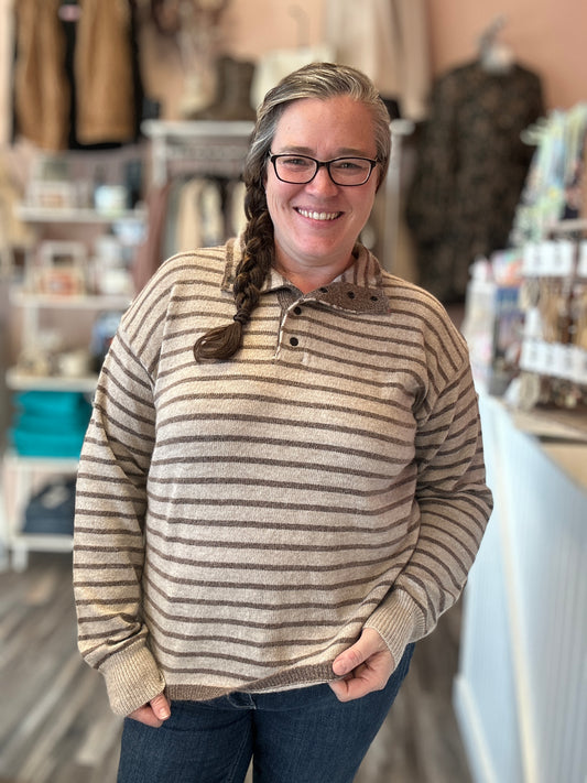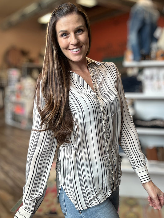 Sheer Ivory and Black Stripe Button Down Long Sleeve