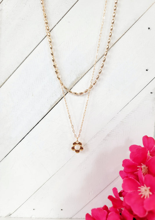 Double Chain Flower Charm Necklace