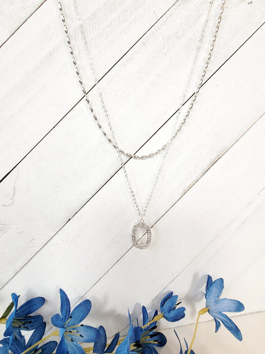 Double Layered Necklace With Oval Pendant