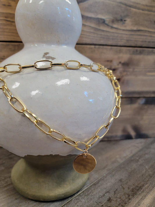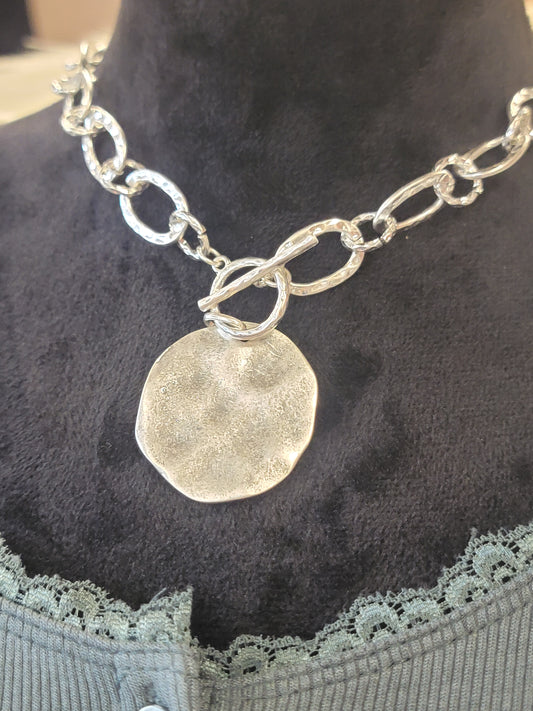 Hammered Link Necklace witih Coin Charm