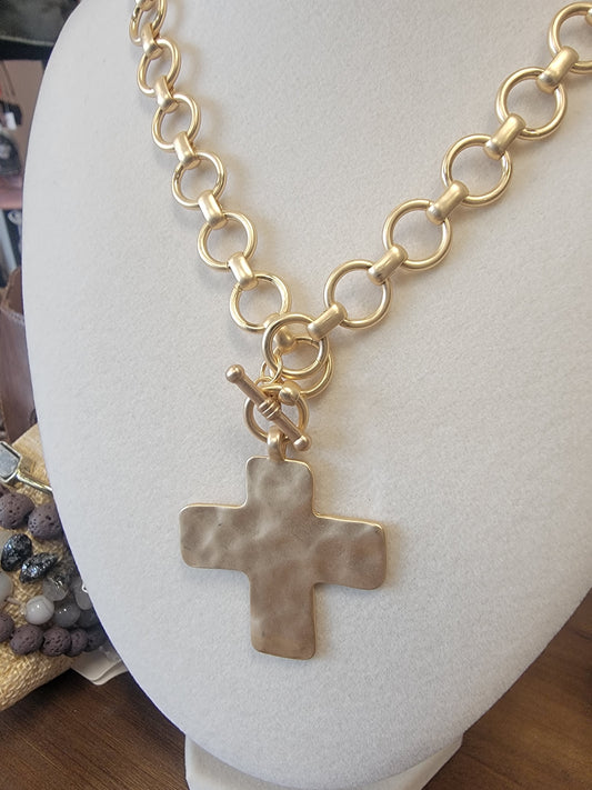 Chain Necklace with Hammered Cross Charm
