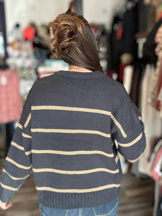 Regular price $46.00 USDRegular priceUnit price / perSale price $46.00 USDNavy/Taupe Stripe Knit Sweater