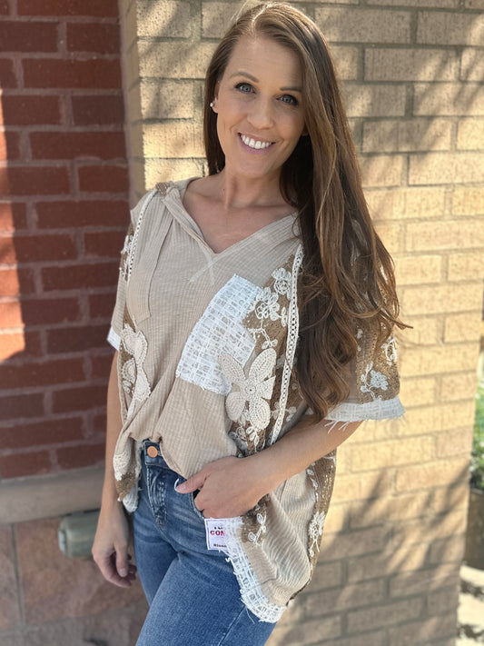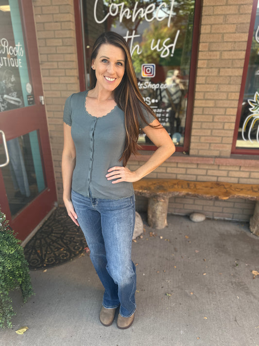 Regular price $18.00 USDRegular priceUnit price / perSale price $18.00 USDRibbed Button Up Lace Short Sleeve