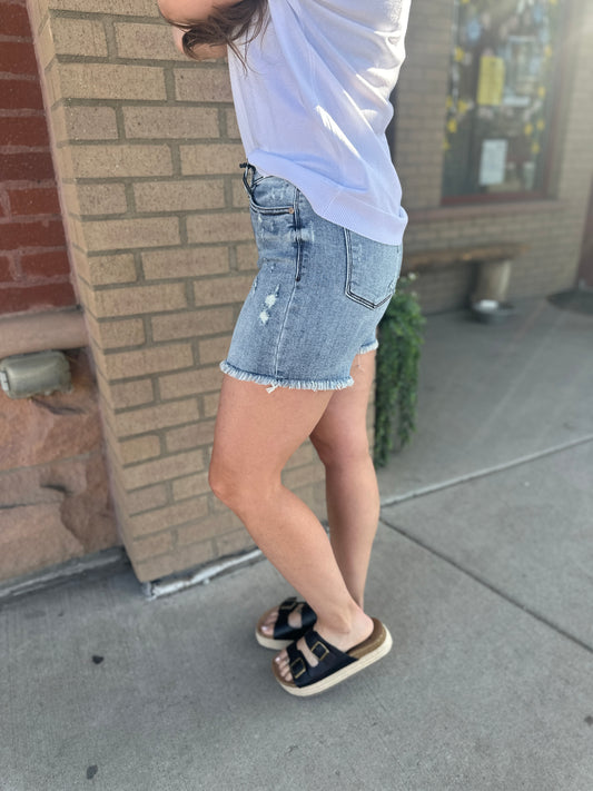 Regular price $49.00 USDRegular priceUnit price / perSale price $49.00 USDAmber Frayed Denim Shorts