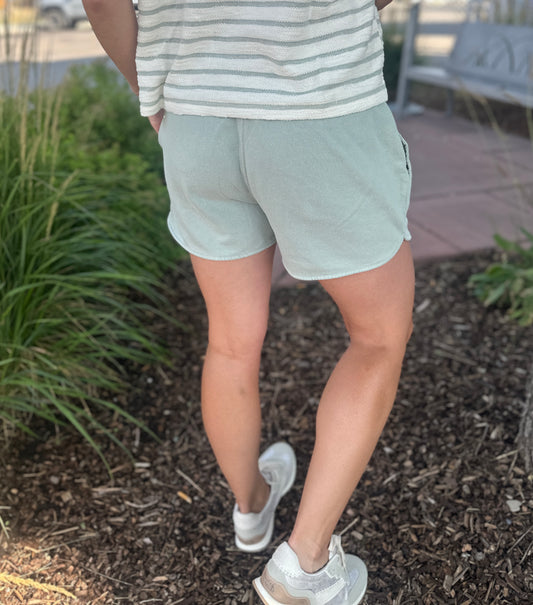 Regular price $22.00 USDRegular priceUnit price / perSale price $22.00 USDSage Green Cotton Drawstring Shorts