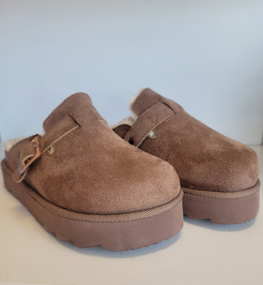 Tan Faux Fur Platform Slippers