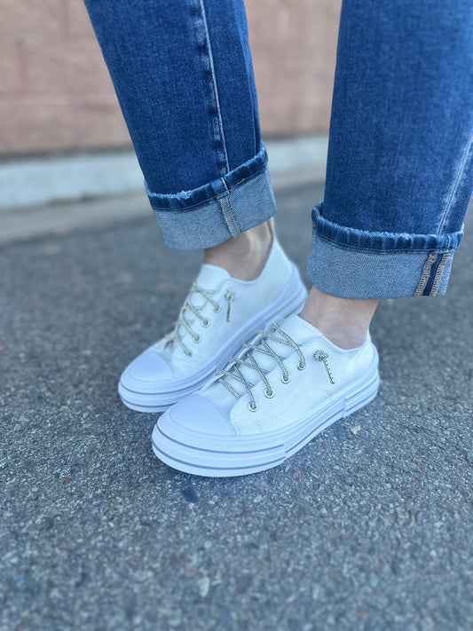 White Platform Sneaker with Bling