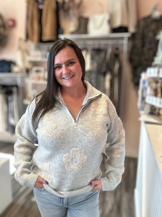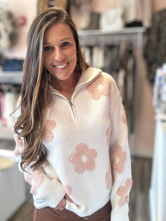 Floral Half Zip Sweater