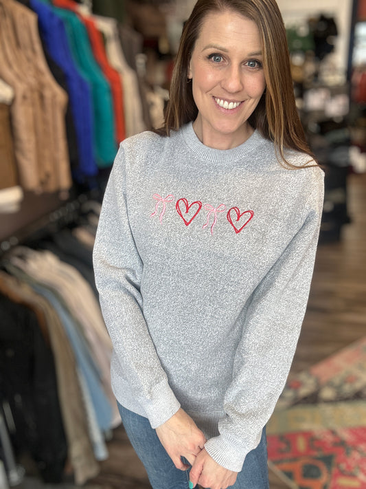 Sweetheart Bow Embroidered Sweatshirt