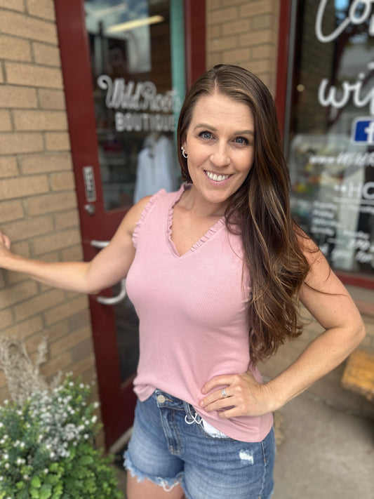 Regular price $28.00 USDRegular priceUnit price / perSale price $28.00 USDRibbed Stitched V-Neck Tank