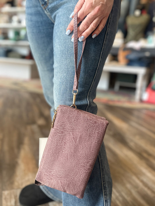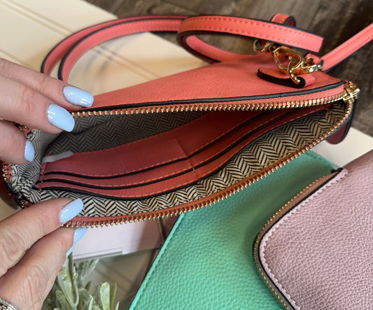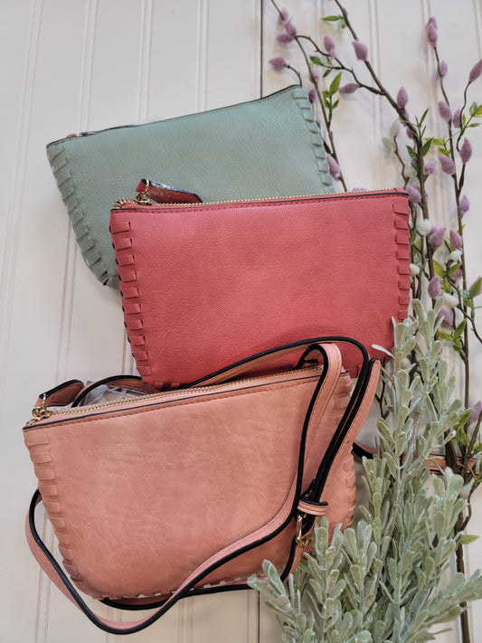 Whipstitch Topzip Wristlet/Crossbody Bag
