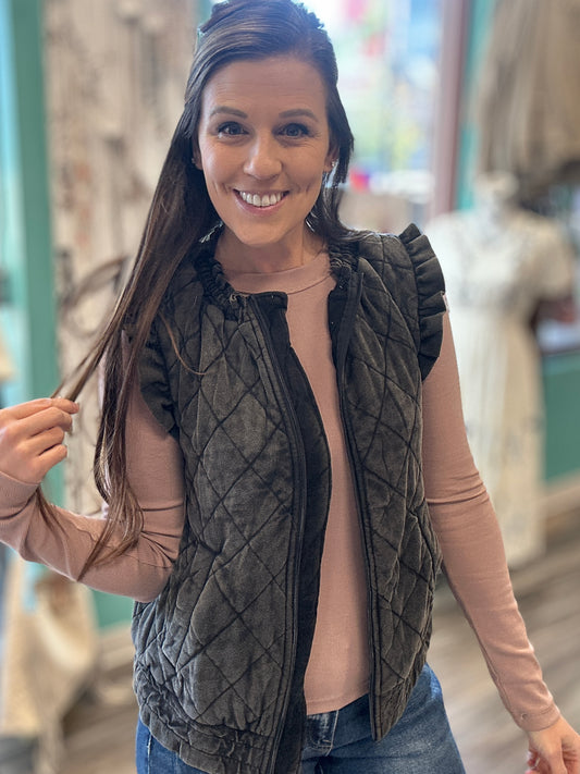 Regular price $58.00 USDRegular priceUnit price / perSale price $58.00 USDWashed Quilted Ruffle Sleeve Vest