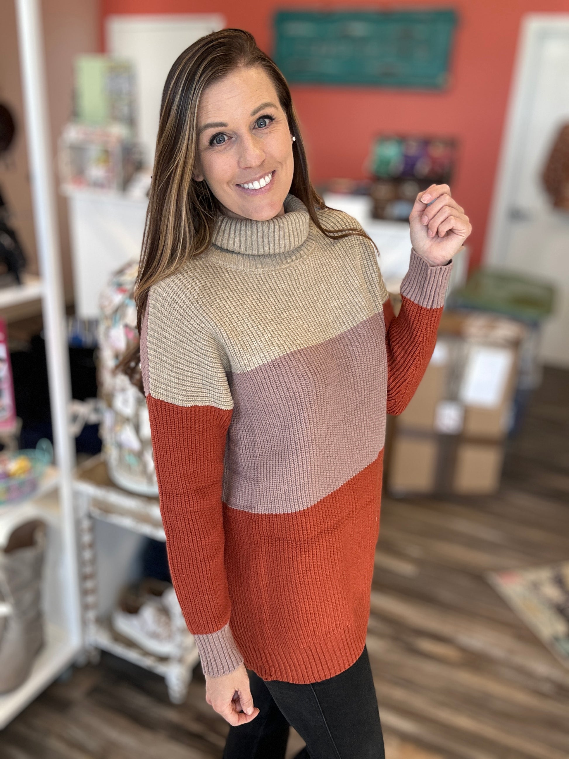 Stay cozy and colorful with this playful colorblock knit sweater featuring vibrant rust and multi-color accents. Its soft knit fabric keeps you comfortable while the eye-catching design adds a fun twist to your everyday wardrobe. Perfect for brightening up chilly days with style and warmth!