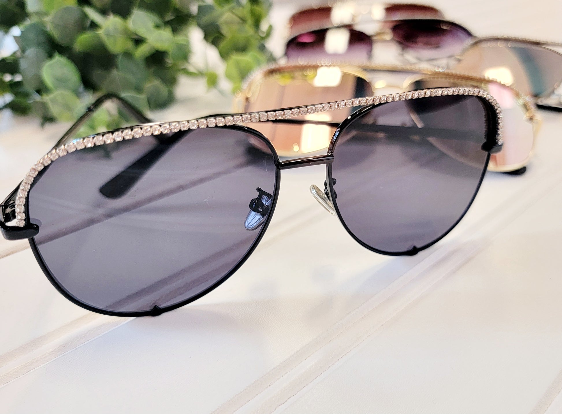 Step up your sunglasses game with Dare to Dazzle Aviators. Available in a variety of colors, these shades are the perfect mix of style and functionality. The rhinestone trim adds a touch of sparkle to your look. Upgrade your eyewear collection today!