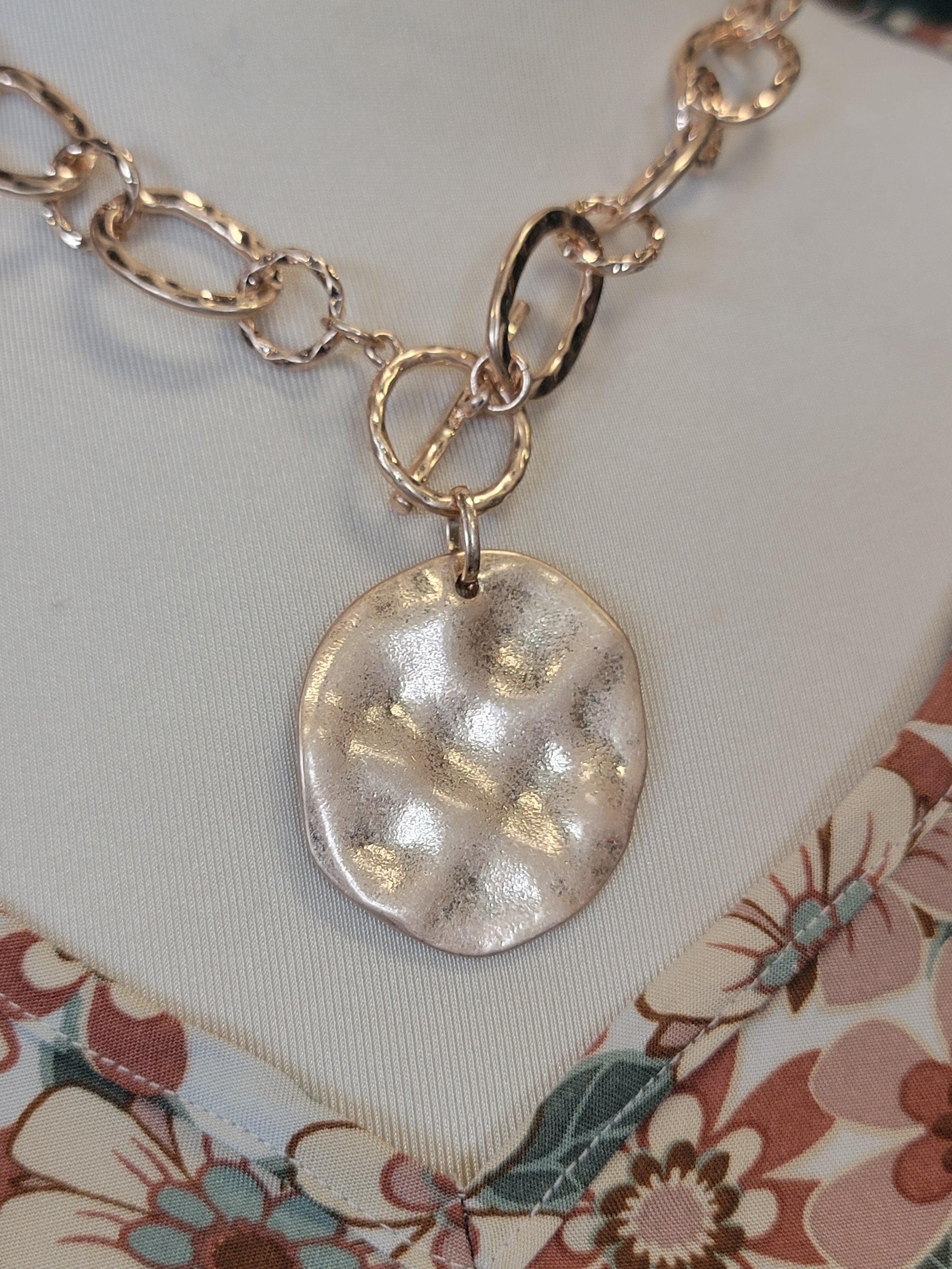 Hammered Link Necklace witih Coin Charm