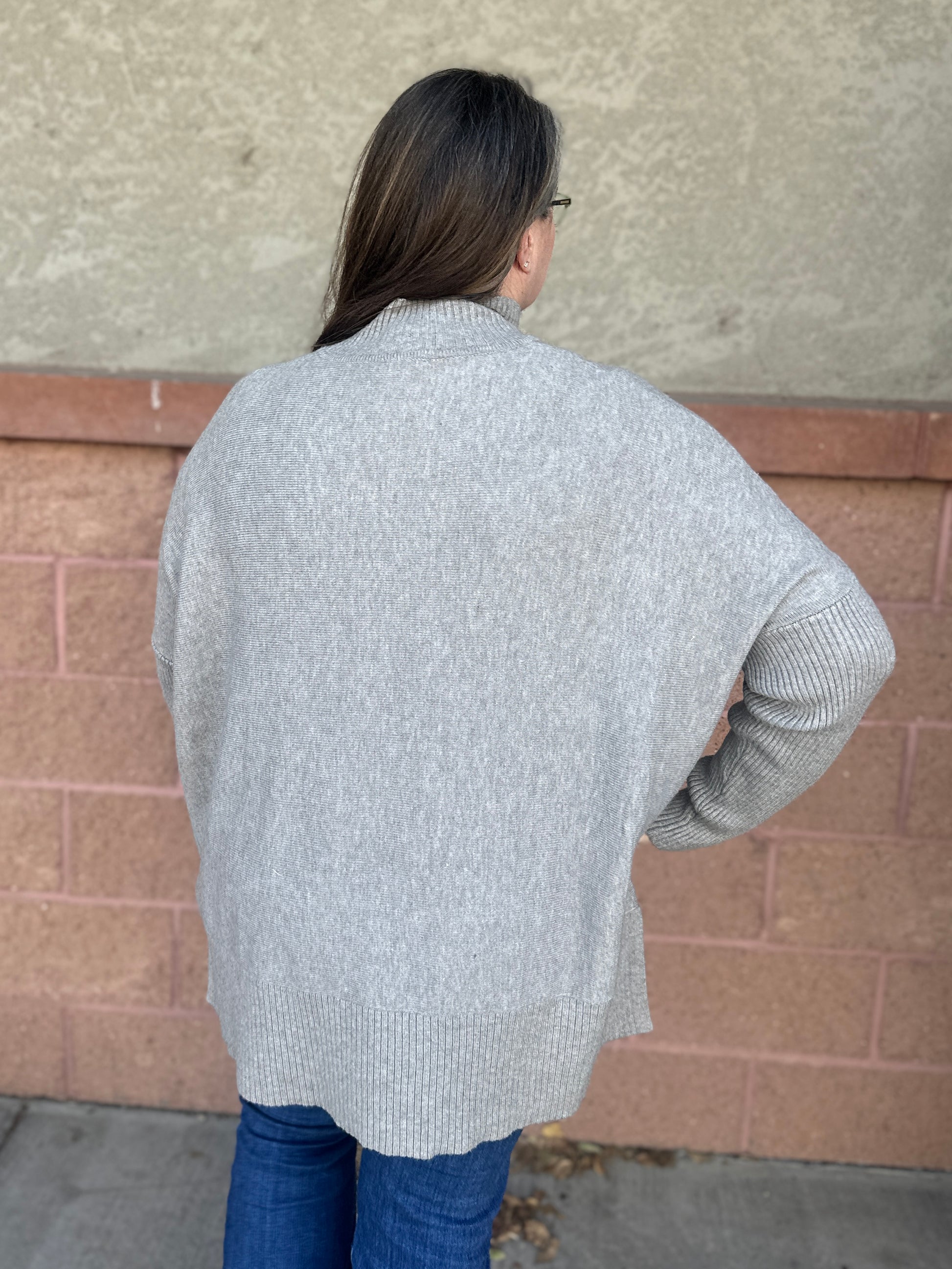 Cozy up in this playful Hook Neck Sweater, featuring a soft fabric with just the right amount of stretch for all-day comfort. Its grey ribbed collar, hem, and sleeves add a stylish touch, while the box cut gives it a relaxed, effortlessly cool vibe. Perfect for layering or wearing on its own, this sweater brings fun and comfort together in one chic package.