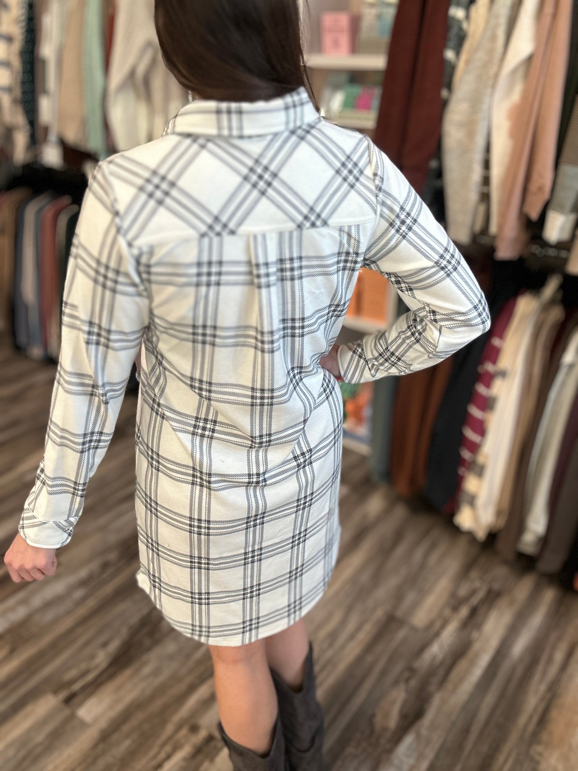Experience effortless style with the Leslie Plaid Dress, combining the cozy appeal of a shacket with the elegance of a long dress. Its plaid pattern and long sleeves provide a timeless, versatile look perfect for layering or wearing alone. Crafted to flow comfortably while offering warmth, this piece adapts easily from casual outings to polished occasions. Embrace a wardrobe staple that blends comfort, style, and function seamlessly.