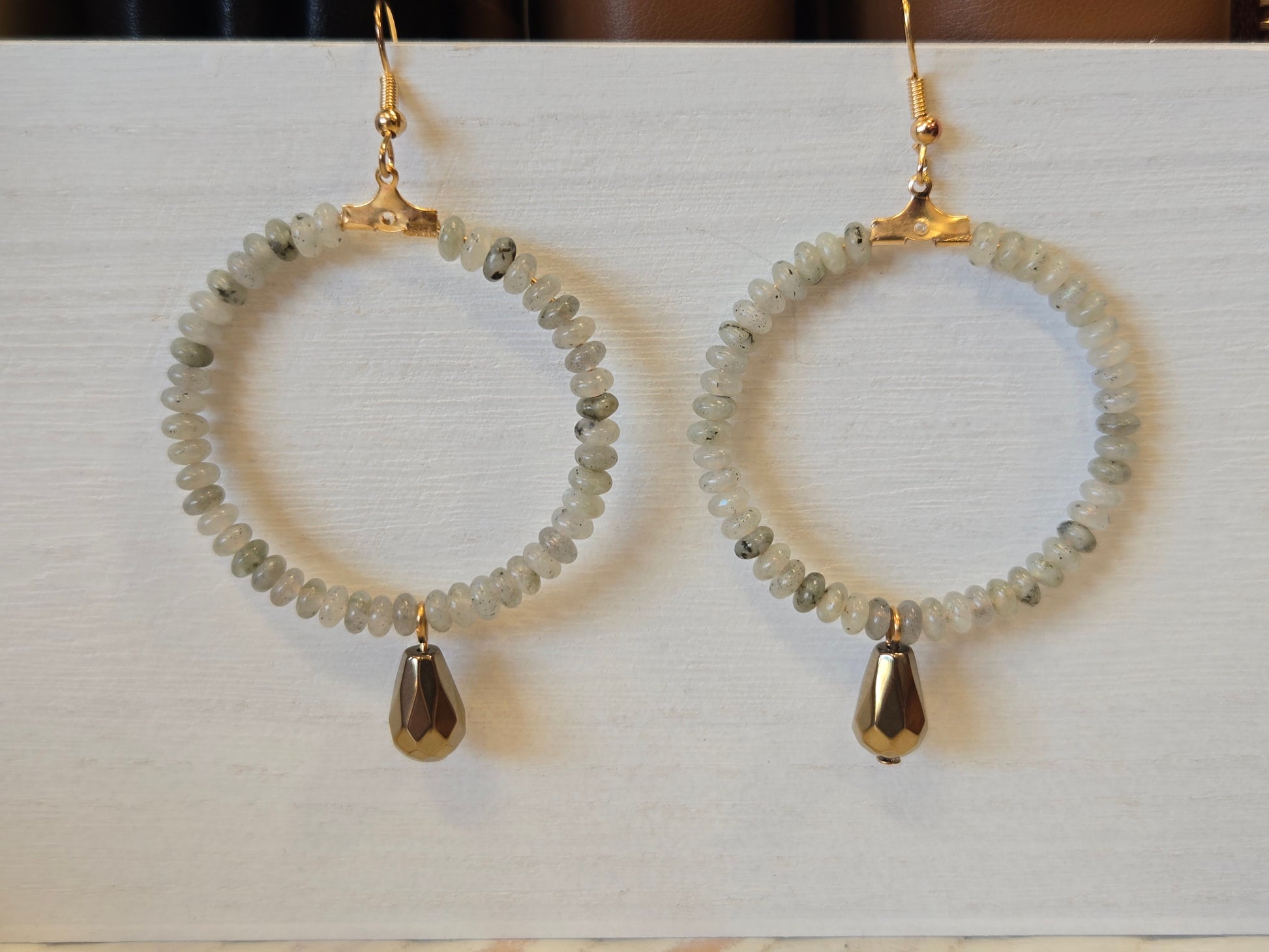 Add a touch of whimsy to your look with the Marta Earrings. These gold fishhook earrings feature graceful hoops adorned with delicate light grey beads and a charming gold teardrop that catches the light just right. Perfect for adding a playful sparkle to any outfit!