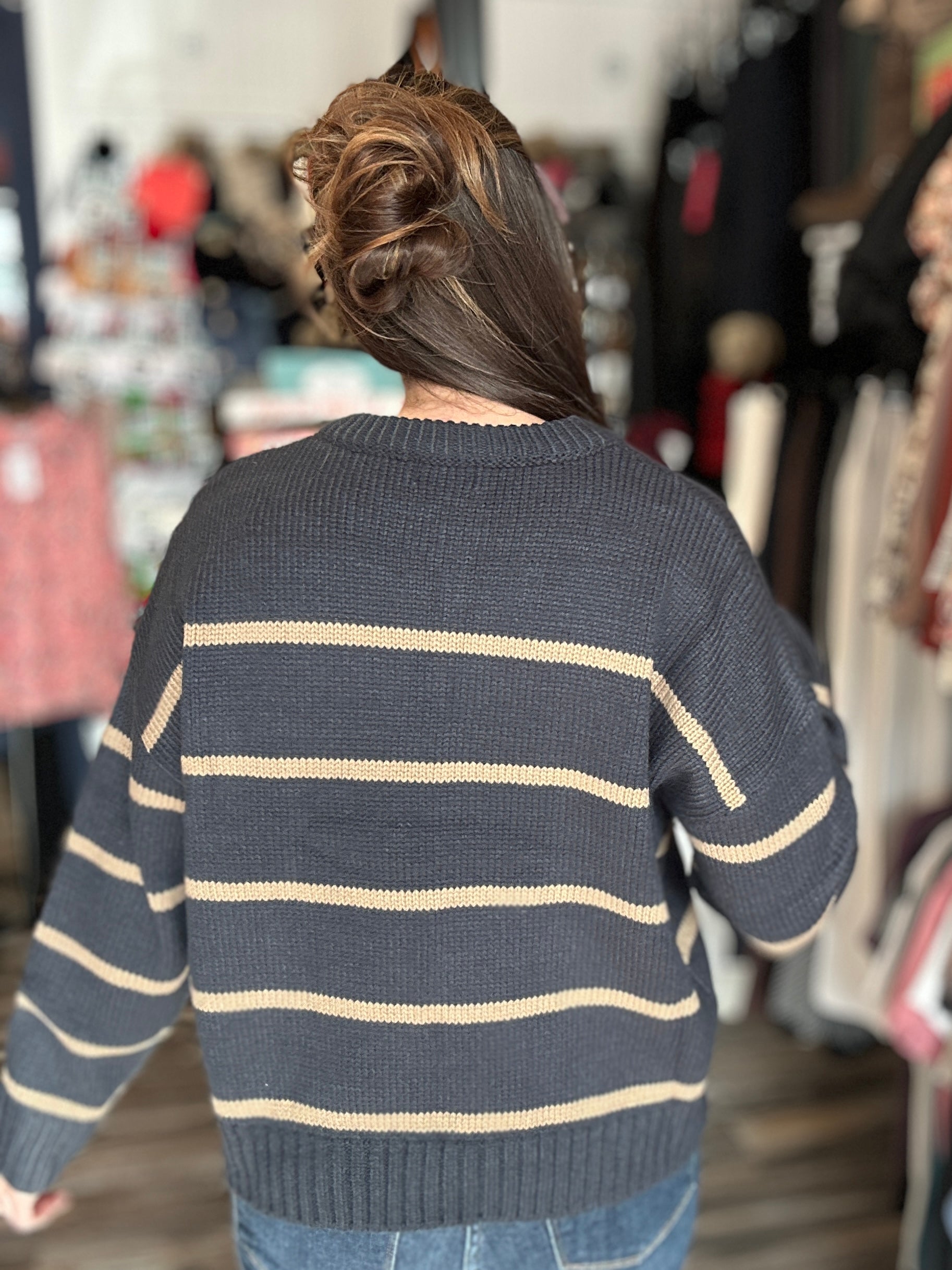 Navy/Taupe Stripe Knit Sweater